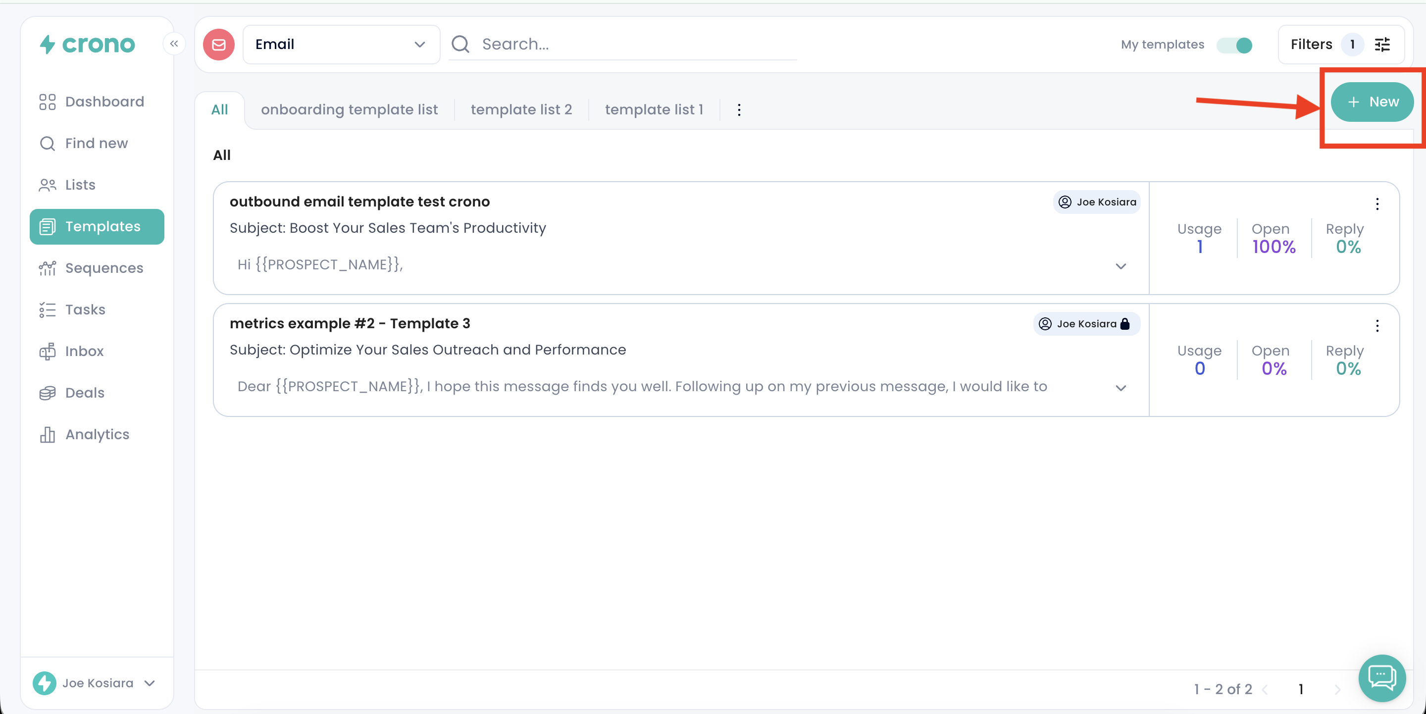 Go to the Templates page — this is where you can create, organize, and manage all your templates