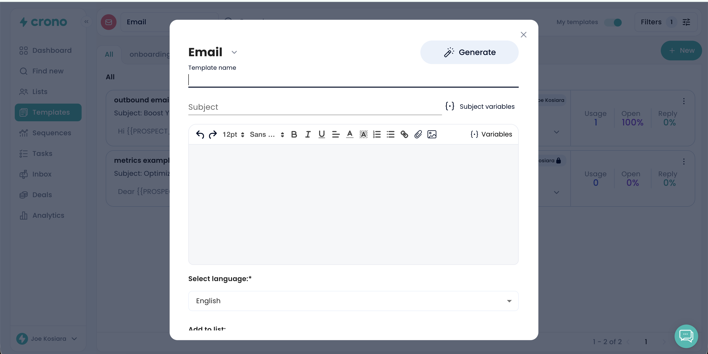 Once you have filled out the required information, click Generate and Crono’s AI will create your template for you.