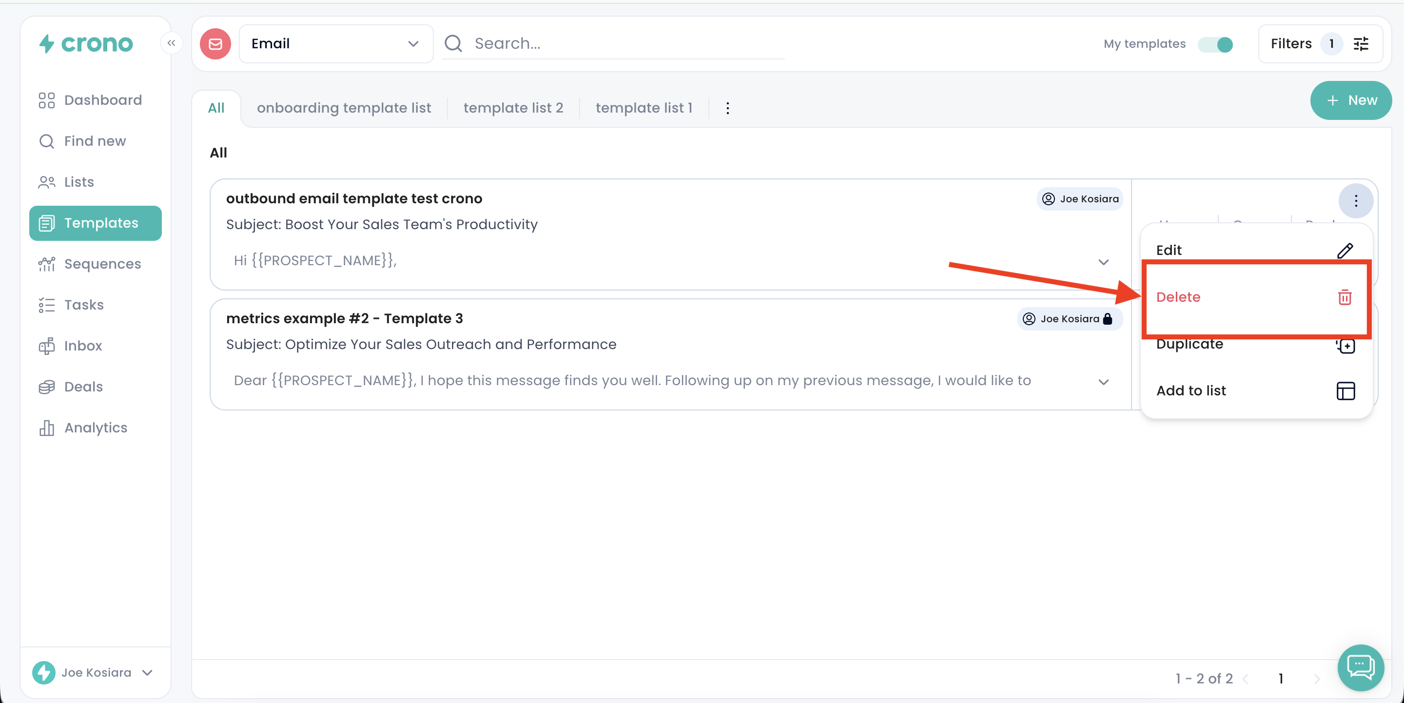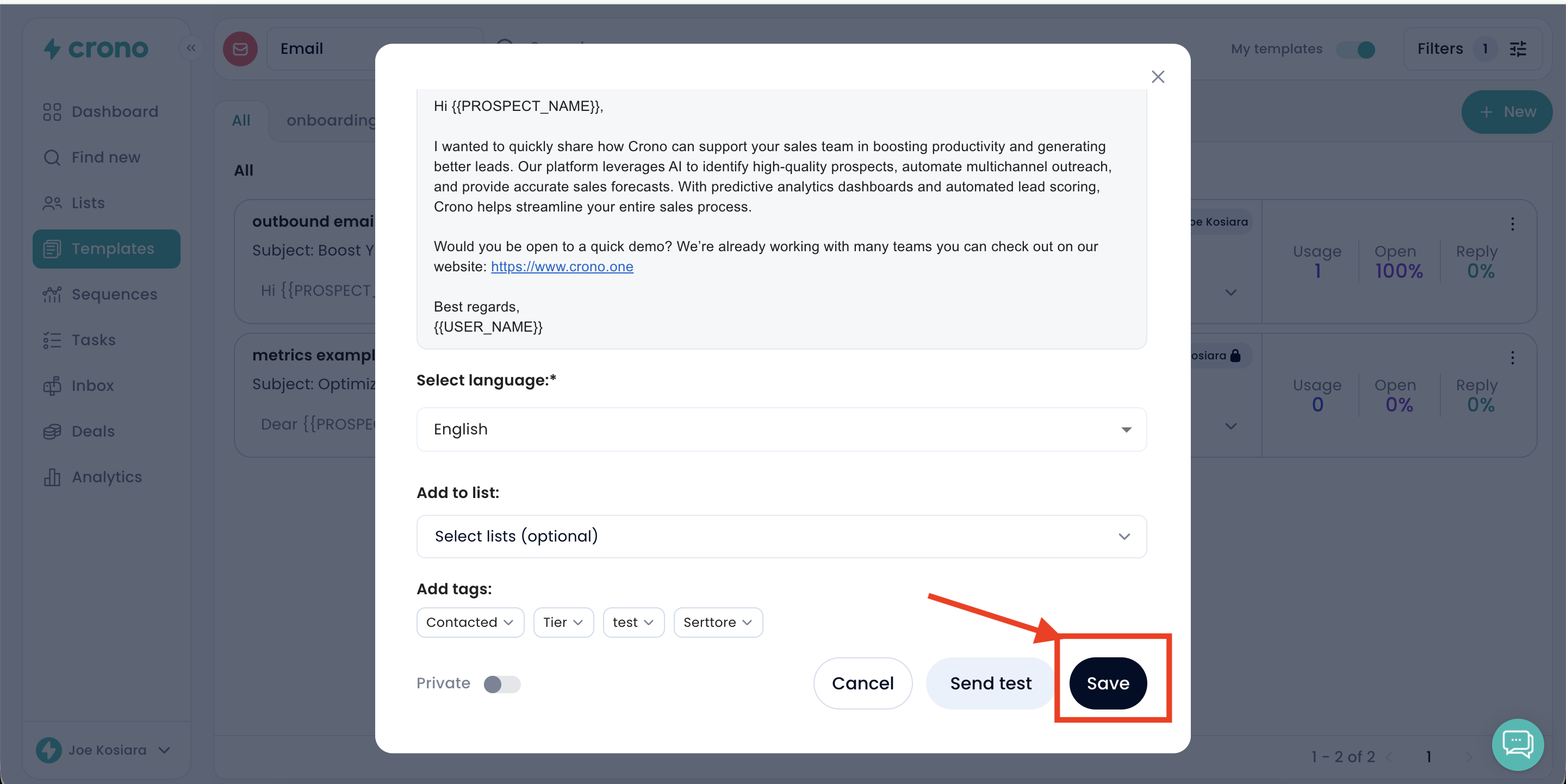 Open Crono and navigate to the Templates page — this is where all your templates are stored and managed.