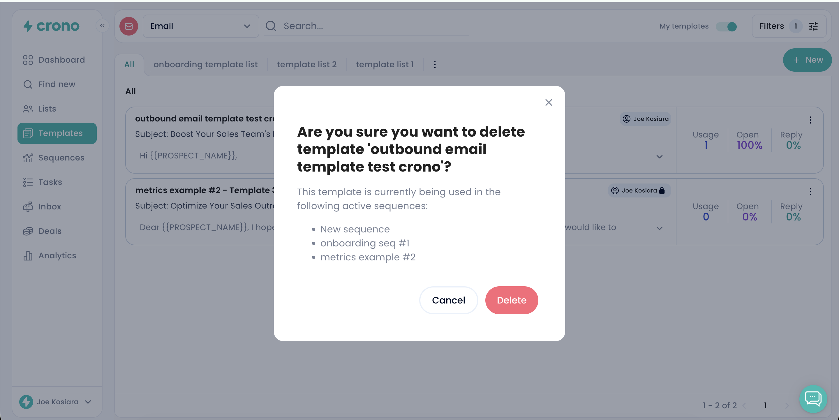 To delete a template, click the trash icon on the right side of the corresponding template and confirm the action.