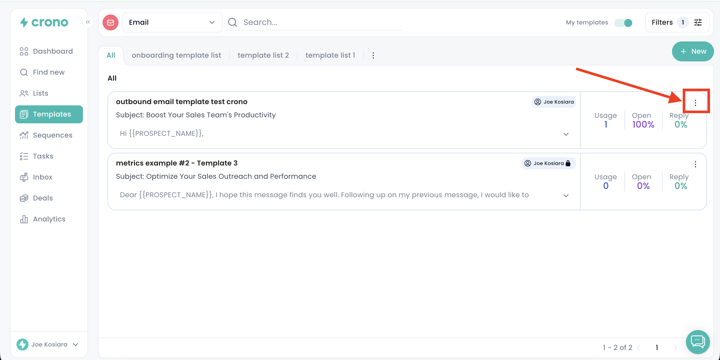 To delete a template, click the three dot icon located to the right of the template you want to update.