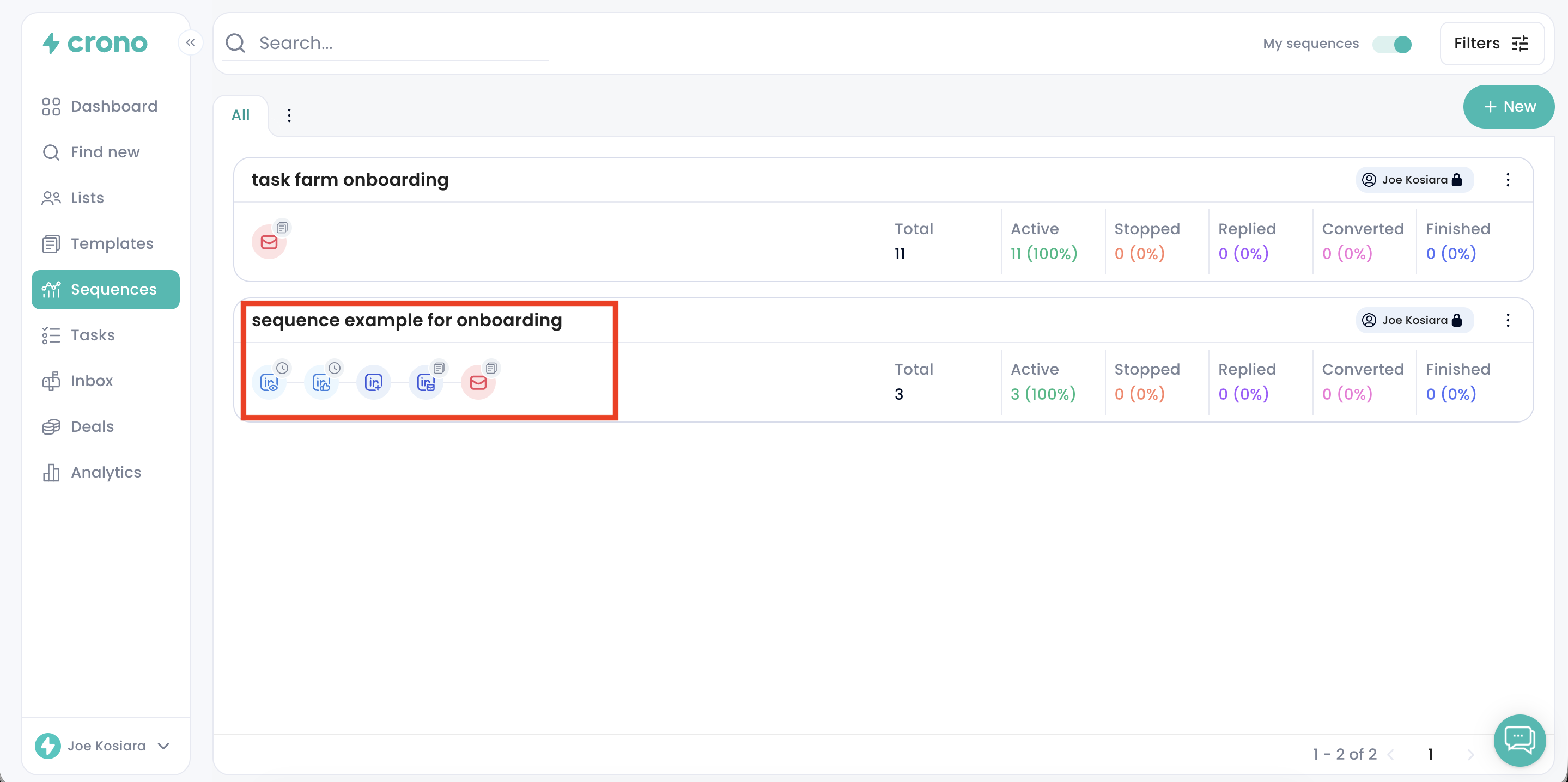 When you delete a sequence, all prospects currently enrolled in that sequence will be automatically removed, and any associated tasks will be permanently deleted.