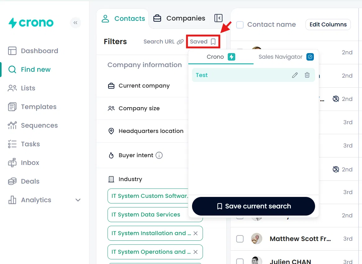 You can now save your favorite contacts/companies searches directly inside the Find New section.