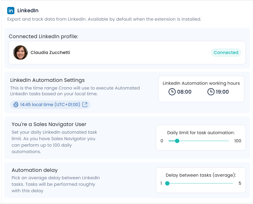 NB: Make sure to open Crono and LinkedIn every day to refresh your LinkedIn session. This ensures that Crono’s browser extension can start properly and allows LinkedIn automation to run smoothly for the day.