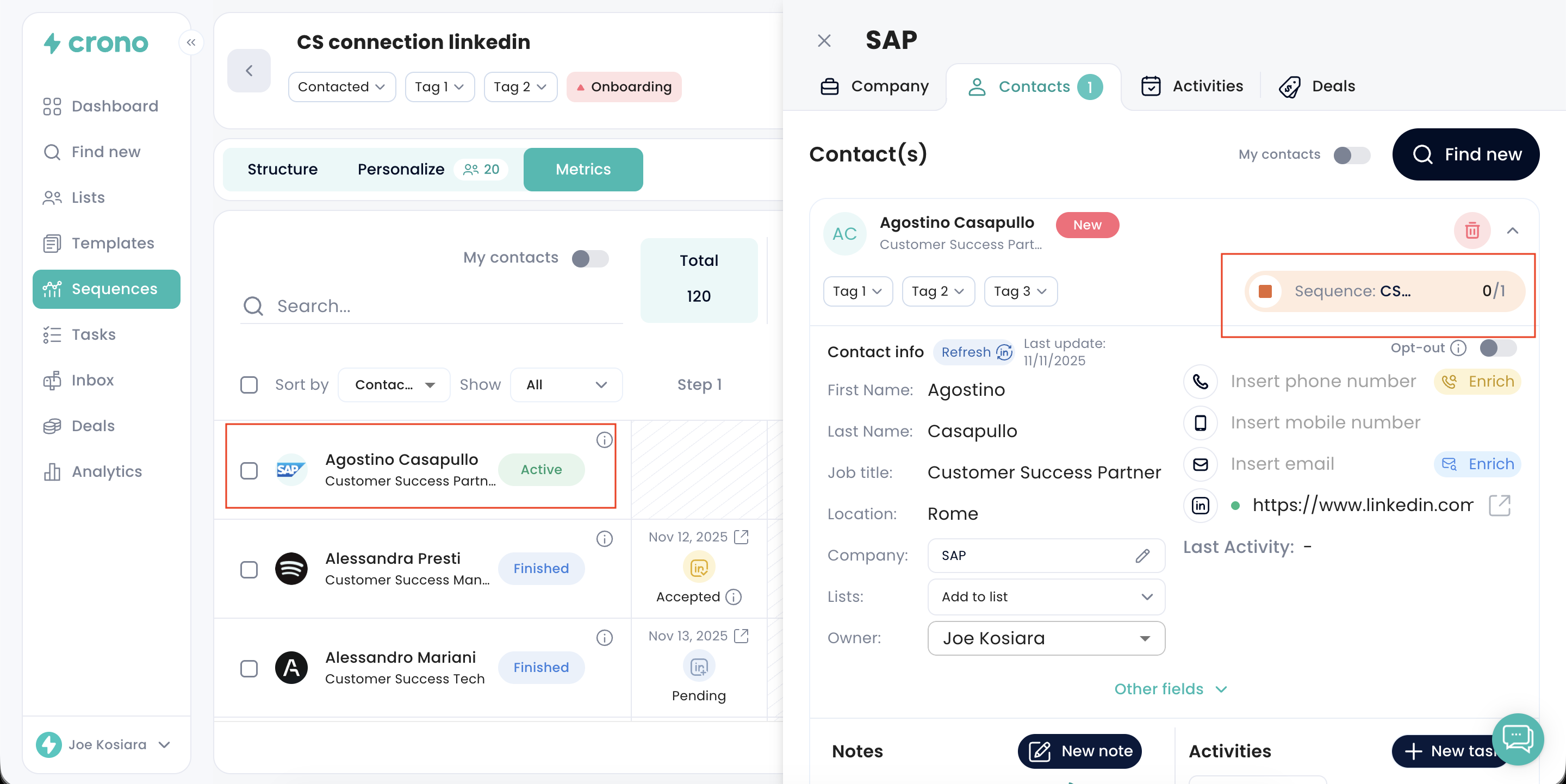 Go to the Contacts tab inside the sequence
