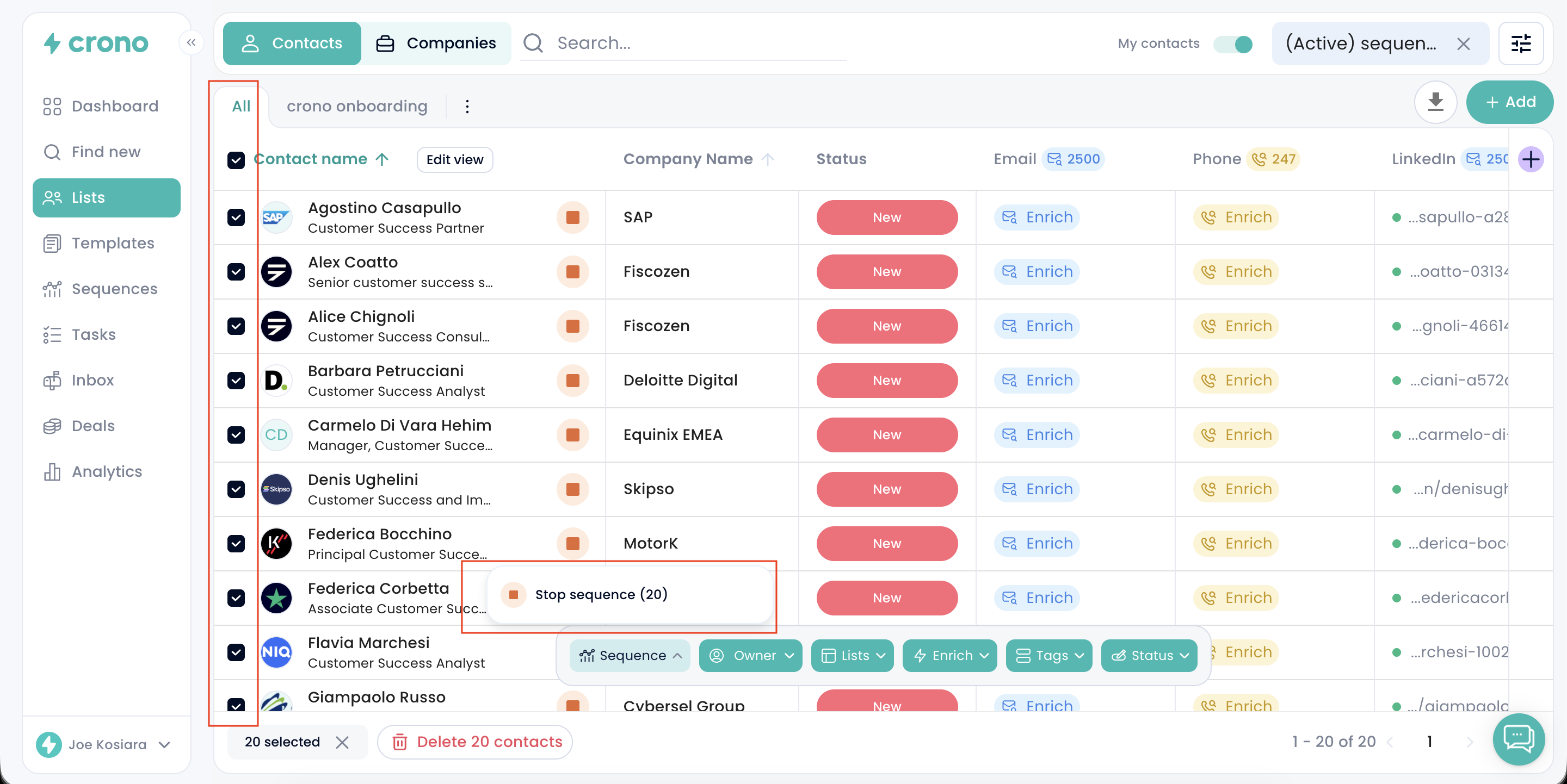 All selected contacts will be removed from the sequence at once.